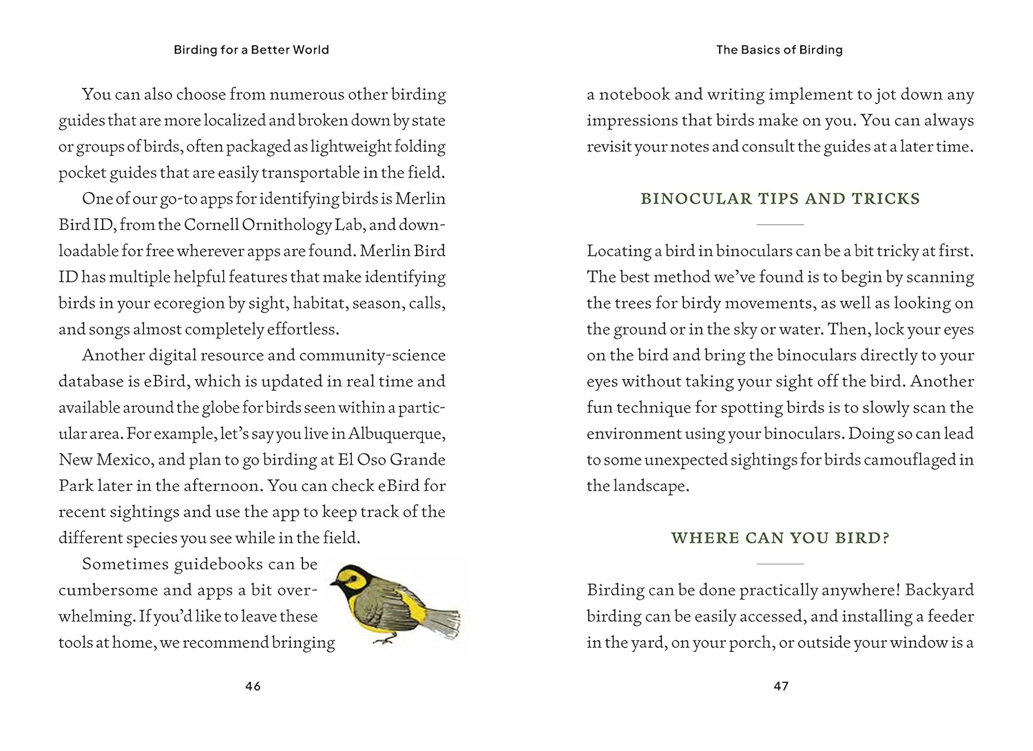 The Feminist Bird Club's Birding for a Better World illustrates how anyone can engage in the universally available activity of birding, and support equity and environmental justice at the same time, making an excellent gift or self-purchase for seasoned birders and beginners alike, as well as for nature lovers, social justice activists, and anyone seeking actionable information about accessibility and inclusivity in the birding community.